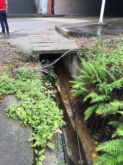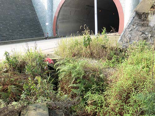 統景隧道為一單洞雙向行駛二車道公路隧道,洞身平面上呈直線型,隧道最大埋深為193m。隧道限界寬10m,高5m。自隧道建成后,雨季隧道涌水嚴重,涌水時已嚴重影響交通。對于隧道涌水情況,經過查閱的資料以及現場走訪、踏勘,采用“新建截排水溝+洞內水溝電纜槽改造+洞內改建過水涵”的綜合治理措施進行隧道涌水治理。