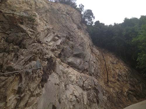 由于近期連續(xù)降雨,國道G319線渝北段巖質路塹邊坡坡面發(fā)生崩塌落石等災害險情。該段邊坡應急搶險采用“格構錨固+錨噴防護+巖腔支撐+截排水溝”等措施進行綜合治理。